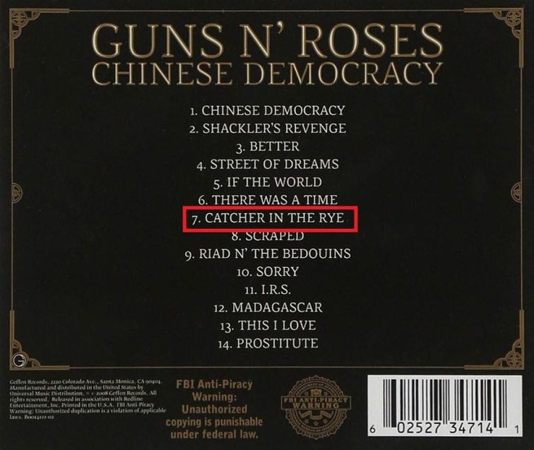 La séptima canción de Chinese Democracy, sexto álbum de Guns N’ Roses, lleva el título del libro.