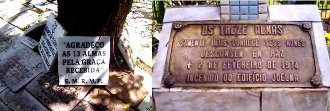 Desde entonces surgió una leyenda urbana sobre un presunto misterio que protagonizarían los espíritus de estas trece personas que no lograron ser identificadas. El mayor difusor de esta leyenda era Luiz Nunes, el vigilante del cementerio, que cuenta que las voces desgarradas de los espíritus piden auxilio de vez en cuando. Además asegura que las voces proceden del lugar donde estaban los cuerpos de estas víctimas del incendio del Joelma. Nunes afirma que estas voces cesan cuando vierte agua sobre los restos de los trece atrapados en el incendio y que después estos espíritus le otorgan cosas. De hecho es a esta labor de “mitigación del sufrimiento” con agua a la que achacaba su curación tras sufrir un infarto cardiaco. Todo un milagro para él.