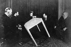 Así que desde esas fechas nos tenemos que trasladar al movimiento espiritista que surgió en el Siglo XIX el cual, pensaba que se podían comunicar con el «Más Allá». Para ello idearon una serie de artilugios siendo el más popular la mesa parlante. Por si no lo sabéis este instrumento consiste en una mesa en la que las personas, siempre guiadas por un médium, se sientan a su alrededor, con las manos sobre ellas y se va lanzando una serie de preguntas a la que la mesa contesta «si» o «no» según el número de golpes que daba con sus patas. Lógicamente este sistema se quedó corto ya que estaba muy limitado en sus respuestas por lo que decidieron buscar otra forma de comunicación para que fuese más completa… A cada letra del alfabeto le asignaron un número y, según la cantidad de golpes que daba la mesa, indicaba una letra u otra y así se formaban las palabras. Como veis un sistema que podía hacerse muy largo…